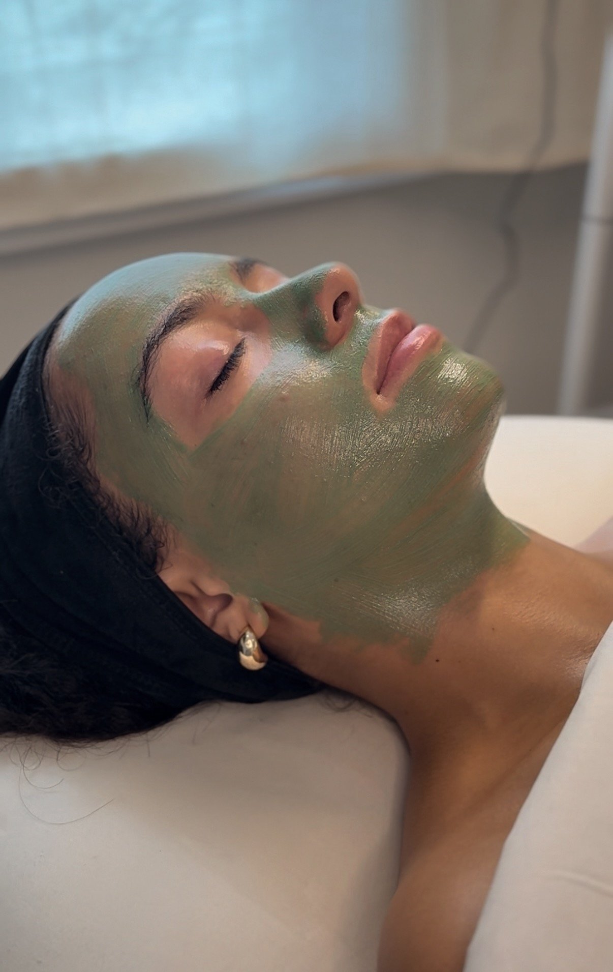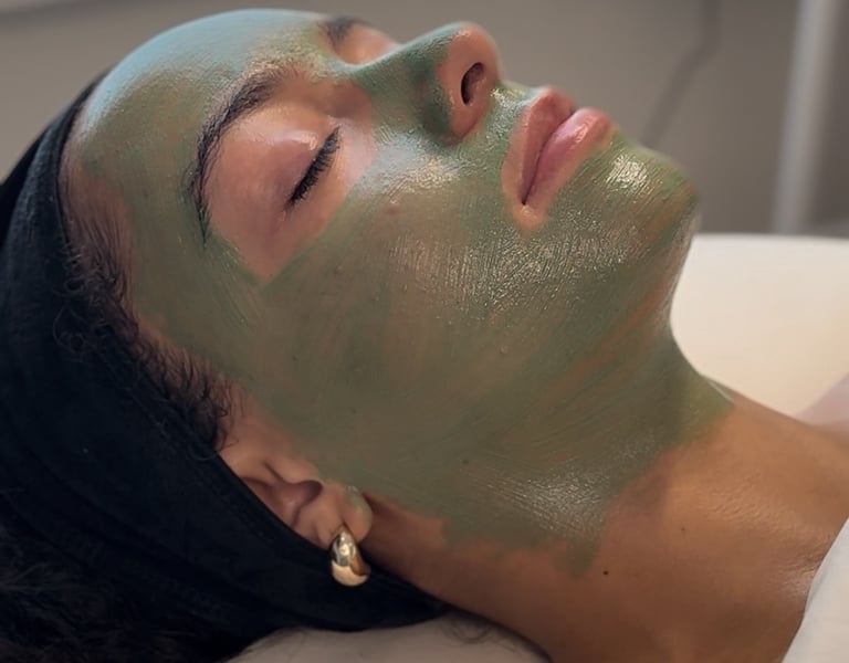 The treatment begins with a deep cleanse and prep, followed by the application of the Green Sea Peel solution. You may feel a slight prickly or tingling sensation as the micro-particles stimulate the skin. The entire service takes about 45–60 minutes.